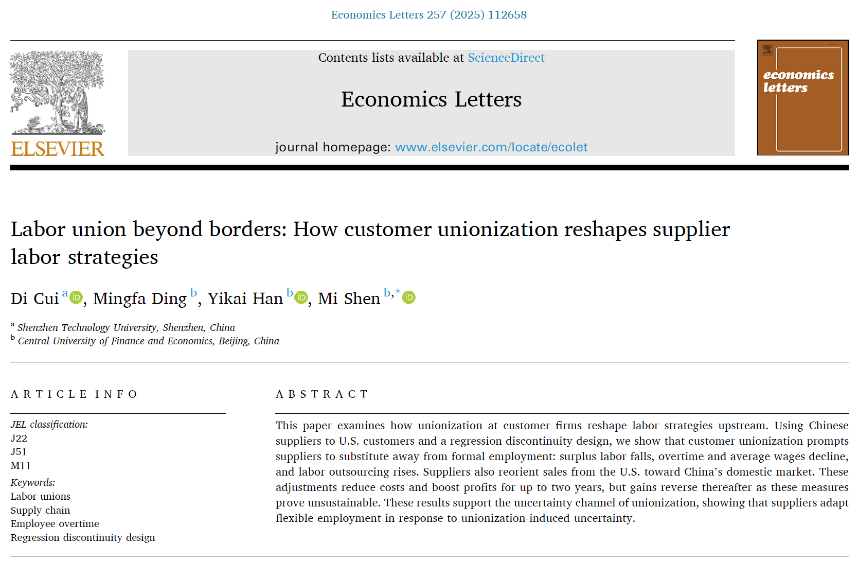 更多>>博士生科研动态|我院在读博士生韩易凯在经济学国际知名期刊Economics Letters发表论文