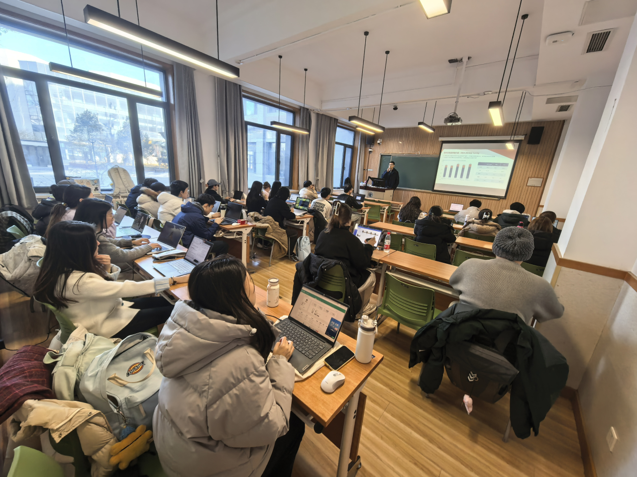 随后,龚先生将重点转向产品定价与风险管理的技术体系,从Black–Scholes模型出发,逐步引入局域波动率与随机波动率模型,讲解不同模型在风险对冲中的适用场景与局限,并解析了Delta、Vega、Gamma、Volga、Vanna 等敏感因子在实际风险暴露与盈亏结构中的作用,指出发行商如何通过场内外工具实施动态调整。他还介绍了交易台的协作机制及风险控制流程,展示了从产品设计、建模估值到对冲落地的完整链条,并分享了当前国际投行采用机器学习与随机最优控制优化对冲策略的前沿实践。通过这些内容,同学们对“模型-交易-风险管理”在衍生品业务中的联动关系有了直观而深入的理解。